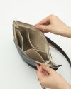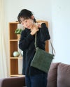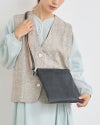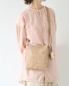 iPad miniが入れられる、横24cm縦25cmのマチなしのスリムショルダーバッグ。細めショルダーで、カジュアルにもきれいめスタイルにも合わせやすいすっきり感。メイン収納はファスナータイプなので、背中に回していても安心です。ナチュラルな色味と、くたっとやわらかいフォルムがどんな装いにもなじみます。肩かけと斜めがけの2wayなので、スタイルやその日の気分に合わせて持ち方を変えて楽しんで。