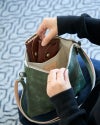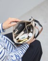 ナチュラルな風合いを活かしているから、使い込むほどにツヤや色が深まって、わたしだけの表情へと育っていくのも本革ならではの楽しみのひとつ。朝の陽ざしを感じながらちょっと近所のパン屋さんへ。カフェで友人とのおしゃべりタイムにも、小さめテーブルにポンと置いて話に花を咲かせて。両手がフリーになるので、お散歩や旅先での街歩きでも軽やかに楽しめそう。