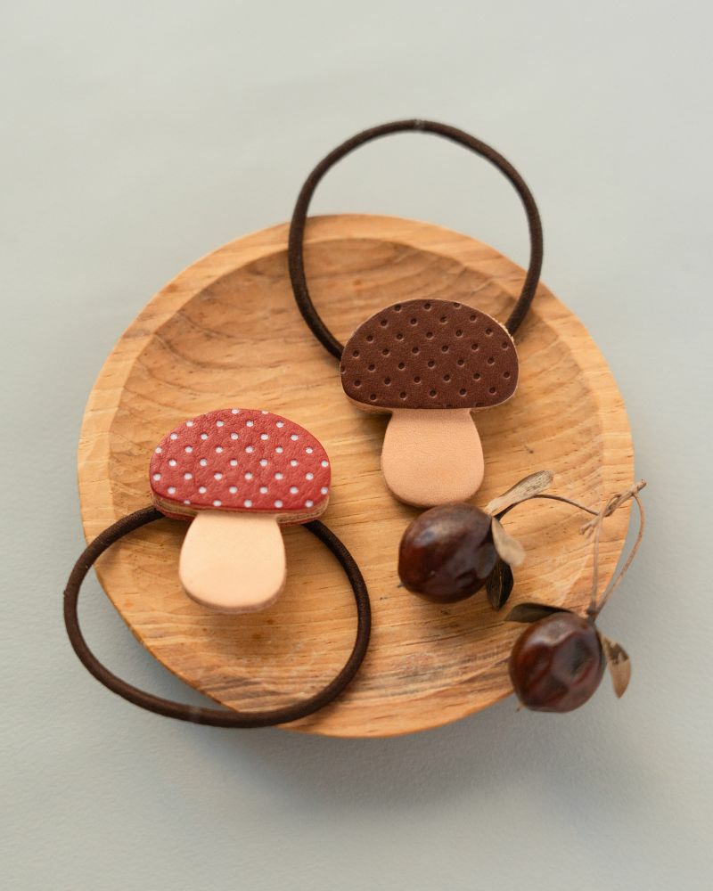 きのこ好きさんにおすすめなのは、レッドとブラウンの2色持ち。キーリング、ヘアゴム、ブローチがあるので、ペアにして「きのこ」コーデを楽しんで。おうちの鍵はレッドきのこキーリングに、ニットの胸元にはブラウンきのこのブローチのように、小物とファッションに取り入れると、ますます心が踊ります。