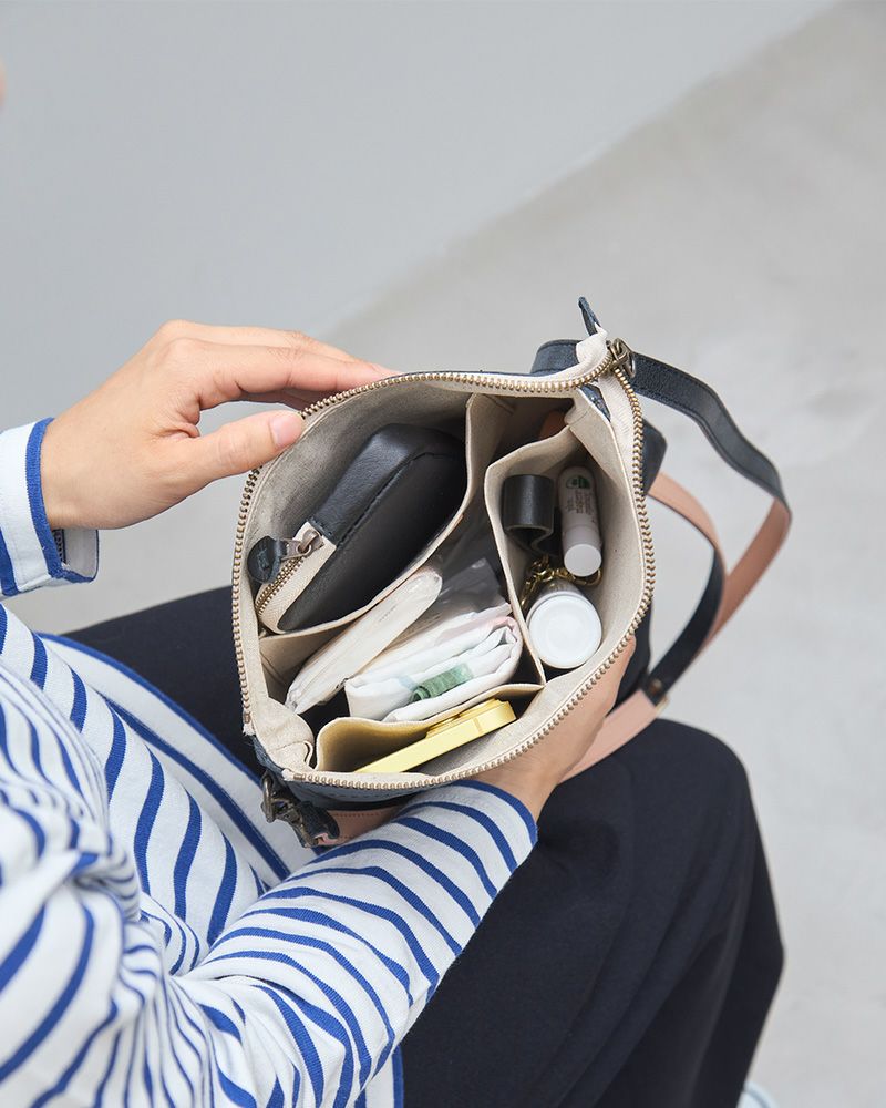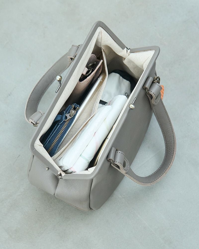 必要なものをやさしく包む。片手でひょいっと Kanmi|まぁるい持ち手で、コロンとしたフォルムがやさしい「ドーナツ バッグ(M) 」