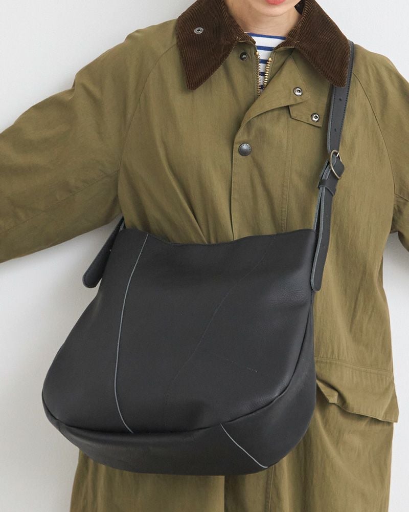 雨の日も元気な、ハチワレ模様の切り替えレザーショルダーバッグ ちょうどよく整う、私に「All story ハチワレショルダーバッグ」