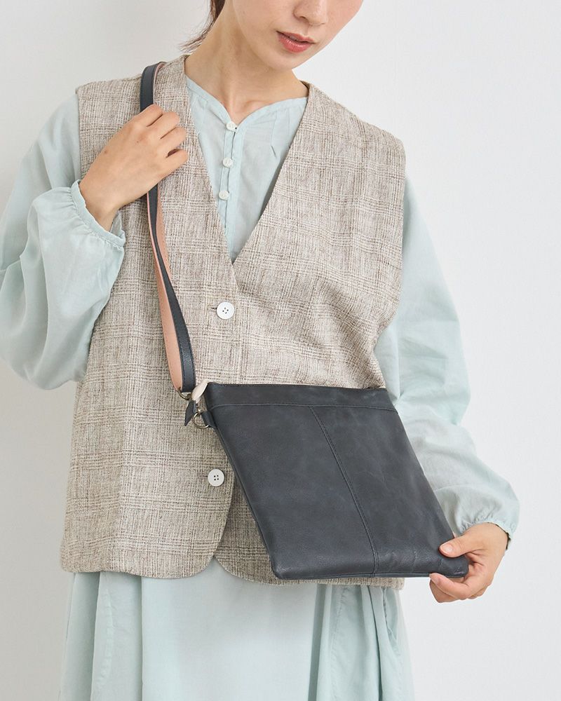 スリムで軽やか、きちんと入るスマートサイズ スリムで軽やか、メンズにもちょうどいい「fuwari スリムショルダーバッグ」