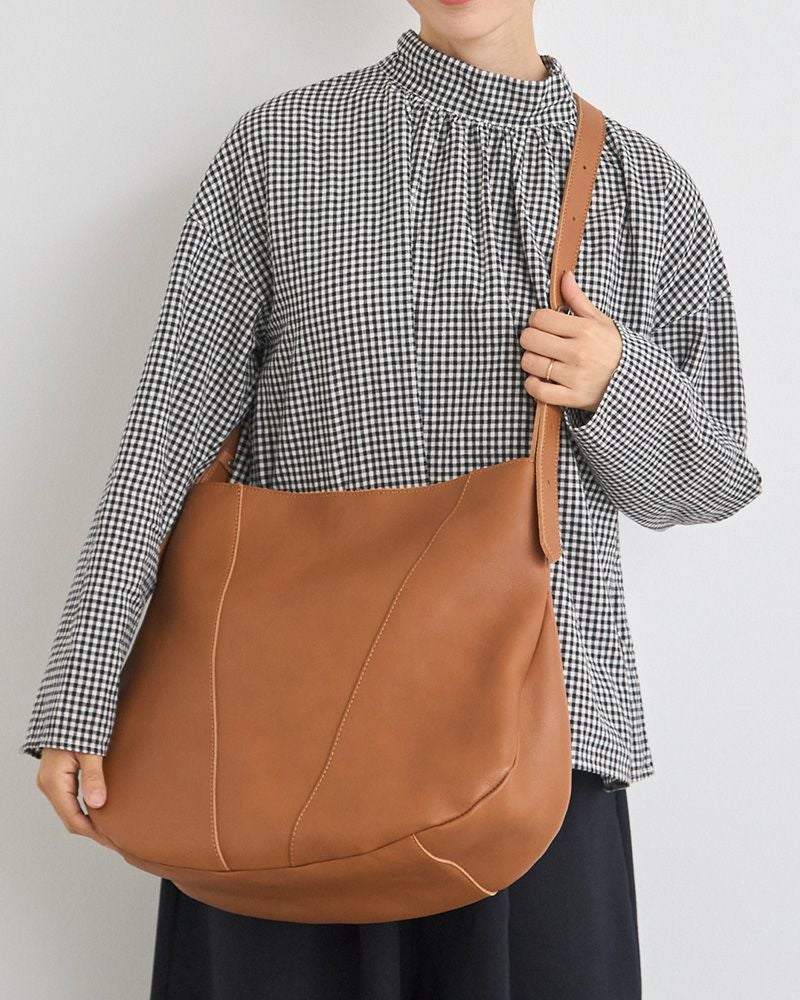 アンティークゴールドの金具が、2.4cm幅のショルダーベルトの左右についているのもポイント。丸みのあるシルエットに、ぴりっとした個性を出しています。左右それぞれ7段階ずつ長さ調節ができるので、高身長さんも低身長さんも、自分に合う持ち方を見つけられます。片方を短めにして、金具の位置をずらした遊び心のあるアレンジもOK。その日の気分やスタイル、シーンに合わせて自由に持ち方を変えられる、自由度の高いバッグです。
