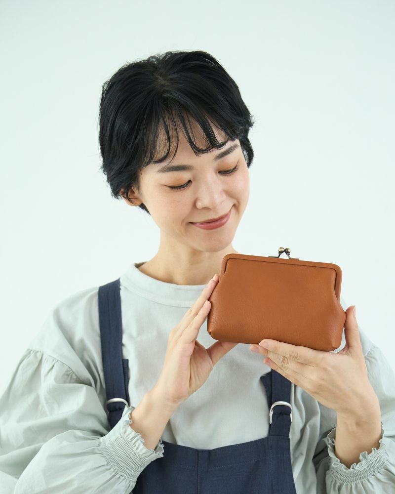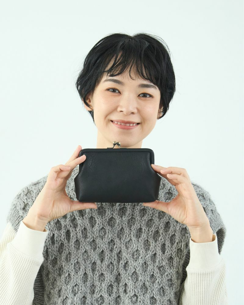 がま口をパカっと開くと、真ん中には小がま口、カード入れが2ヶ所。カードは8ヶ所に分けて入れられるので、ポイントカードや通帳などを毎日持ち歩きたい方にぴったり。小がま口には小銭をどうぞ。どれだけレシートやポイントカードが増えてもすっぽり受け入れてくれる、懐の深いお財布です。入れすぎるとがま口が開いてしまうことがあるので、その場合は中身を整理整頓するタイミングかも。