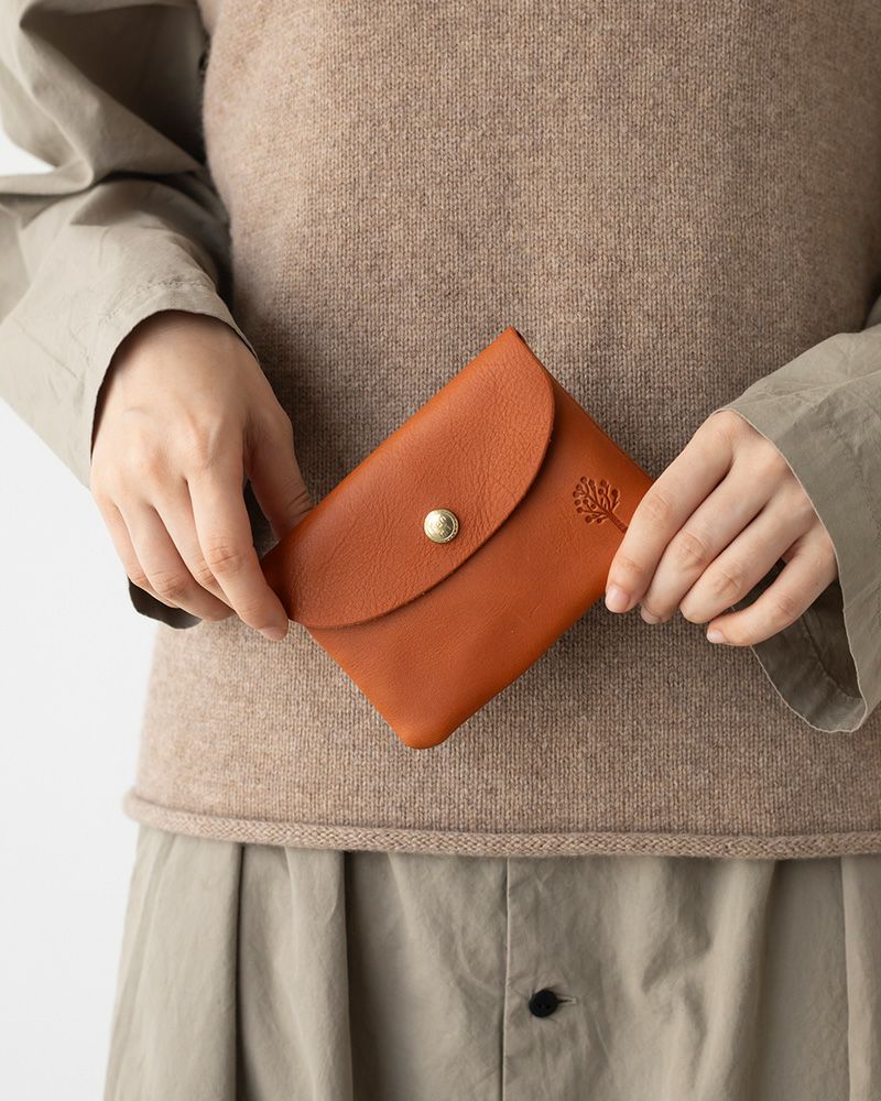 ポケットに入れられるコンパクトで軽いお財布。男性にも使いやすい切りっぱなしの潔さと、角と蓋のラウンドの柔らかい印象が絶妙なバランス。革の裏面の厚みを漉いたことで、内側もなめらかな手触りになって、使い込んでも毛羽立ちにくいのも嬉しい。