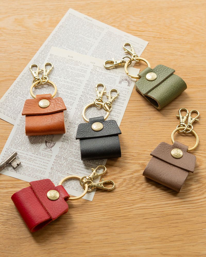 金属を曲げて作ったおうち形のキーリング「キーリングハウス」と組み合わせて使うとかわいさ倍増。革と金属でできたお家、それぞれの個性を楽しんで。