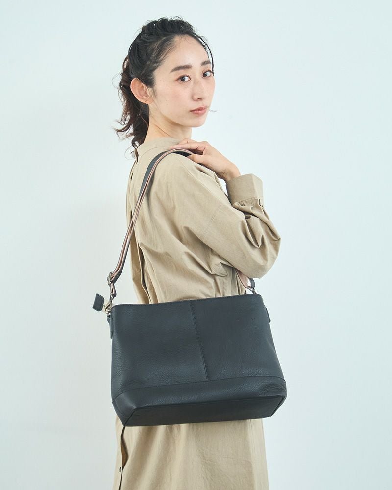 itsu monoシリーズでは初の、ファスナーで口がしっかり閉まるタイプ。飽きのこないシンプルさと使いやすさ、両方がひとつになった通勤通学でも頼りになるショルダーバッグです。背中に回しても中身が見えないので、満員電車など混雑している場所でも安心感があります。