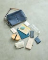 下がすぼまった舟形のカタチが多いitsu mono シリーズに、底までまっすぐのストレートタイプができました。A4の書類やファイルが横向きに入れられるので、出し入れがスムーズです。横長バッグの真ん中に入ったステッチが、カバンをしゅっときれいに見せてくれます。