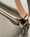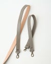 レザーを2枚貼り合わせた厚みのあるショルダーベルトで、たくさん荷物を入れても肩の負担を和らげてくれます。長いショルダーの裏側がベージュ色、ショートショルダーは同色の2枚合わせになっています。
