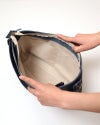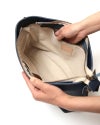 コットンリネンの裏地には、高さ13センチ幅27センチの大きめファスナー付きポケットと2つに分かれたポケットがついています。大切なものはファスナーポケットに、スマホなどの頻繁に取り出すものはオープンポケットへ。あなたの毎日をそっと支えられるように、細かい部分まで使いやすさにこだわりました。