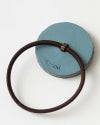 とっても手の込んだヘアゴムなので、髪の毛につけるだけじゃもったいない。アイディア次第で色々な使い方を楽しめます。ふだん使いのバッグの持ち手に付けると、まいにちを華やかで新鮮な気持ちにしてくれるワンポイントに。水色とベージュ、黒と白など違う色を組み合わせて使うと、ぱっと目をひくアクセントにもなります。ゴムが伸びてきたら、新しいゴムをぎゅっと押し込んで付け替えができるので、長めのゴムを通して本や手帳のバンドとしてもどうぞ。貼り合わせた革の周りを軽くやすりがけしてあるので、毛羽立ちにくくなっています。