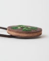 直径4センチと小さめだけれど、ぱっと目を引くのは色々なこだわりが詰まっているから。切り込みを入れた革に1本ずつ通していく手刺繍は、真ん中にボリュームをもたせる事でバラやたんぽぽ、わたげがぐっと引き立って見えるようになっています。表革と裏革の間にベージュ色の革をサンドしているので、横から見るとクリームが挟まったビスケットのよう。3枚の革を貼り合わせた事でうまれた、ぽってりしてした厚みもかわいらしさのひとつです。