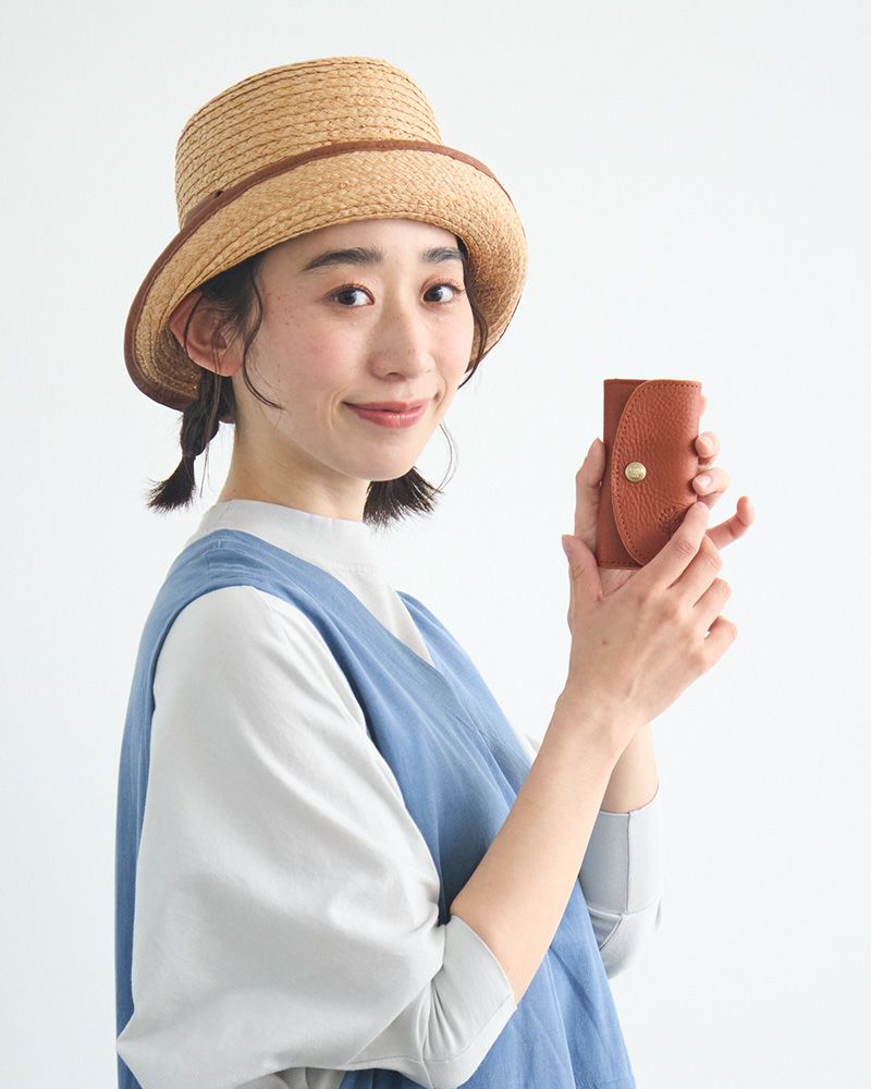 中を開くとアンティークのような風合いのくすんだゴールドの金具が、4つ並んでいます。革の色味と相まって、ナチュラルだけど上品さもあるので、世代を選ばずお使いいただけます。