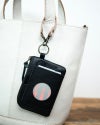 キャッシュレス派のミニウォレットとしても活躍しそう。コンパクトなので、ポケットに入れておでかけできます。サイドのリングに指を通せば落下防止に。