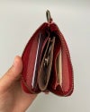 背面にパスケースがついたコンパクトなL字型のカードケースです。内側の左右にカードポケットがあるので、たっぷりカードを持ち歩きたい方におすすめです。さっと引くだけで中が見渡せるL字ファスナーで、カードの出し入れもスムーズ。コンパクトにカードをまとめられるので、小さめバッグや荷物が多いときの強い味方です。