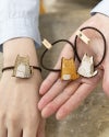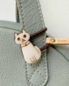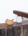なんとも癒し系な表情のねこたちは、Kanmi.の愛猫たち、ごま・もも・どらやきがモデル。手描きの猫たちをメープルの木にレーザーで焦がしつけて、ふわっと色付け。つやつやの樹脂でコーティングしました。つるつるした手触りとあたたかみのある木の質感、そしてなんといっても猫たちのゆるいお顔。型押しのKanmi.ロゴ付きレザータグがアクセント。