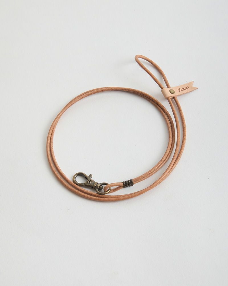 小さめのがま口やキーリングに追加してアレンジすれば、いつもと違う表情に。ヌメ革の自然な表情をいかしているので目立ち過ぎず、ナチュラルさを加えてくれます。 下げているのを忘れてしまうほど軽くて便利な、さりげないネックストラップです。